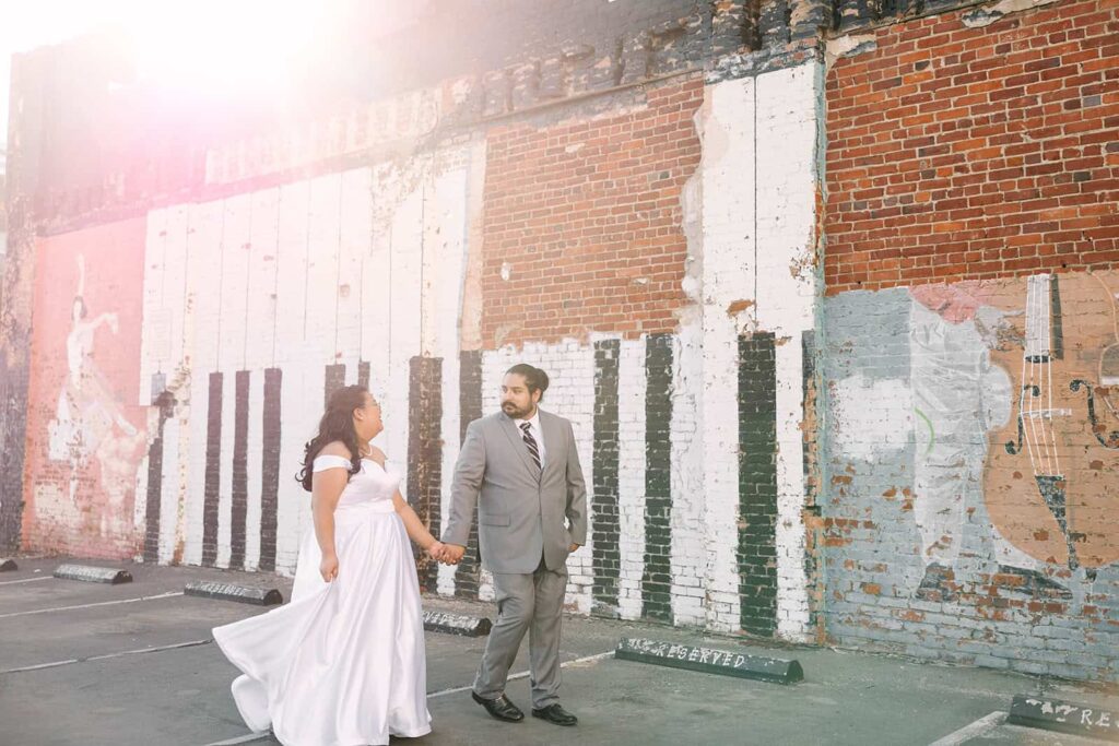 - Heading to the mural district for unique wedding portraits