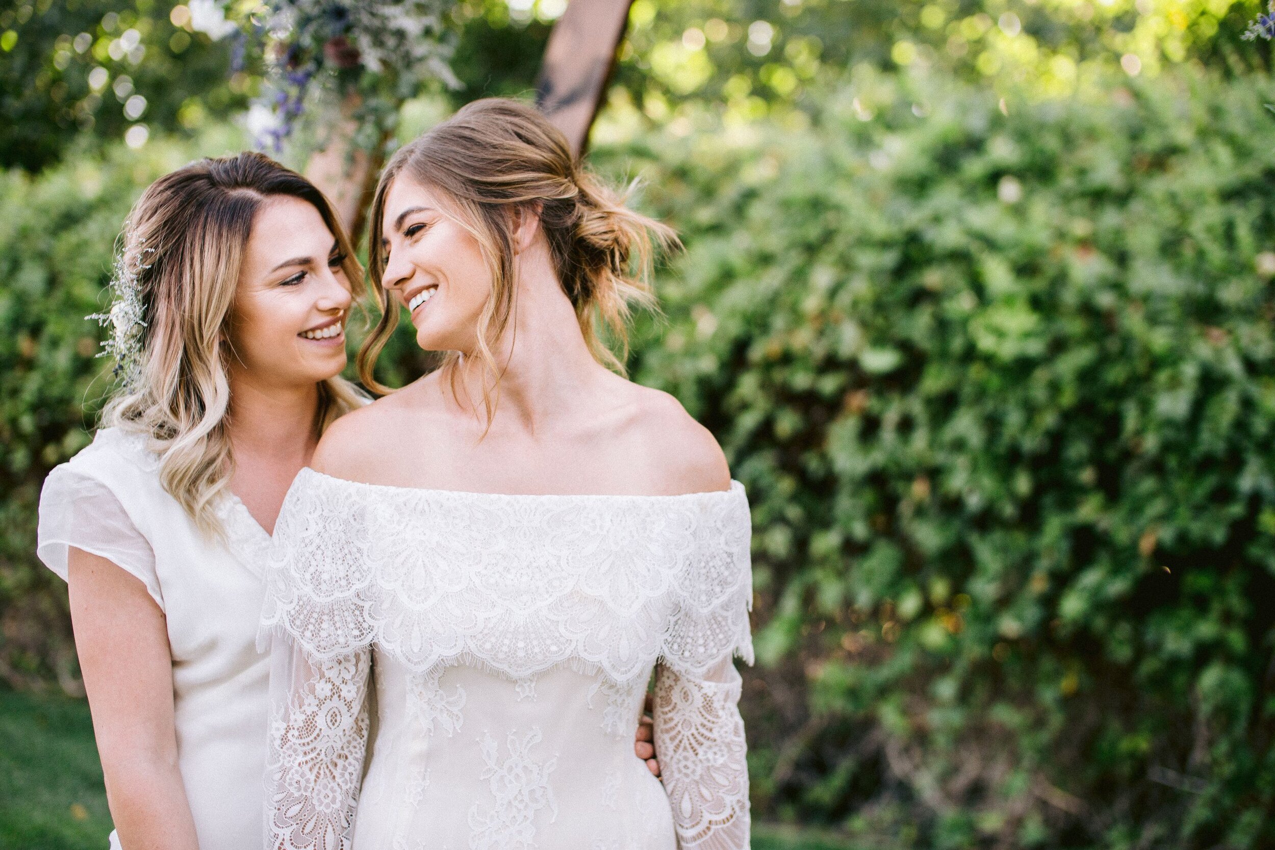 When I first moved to the fresno area and decided to get into wedding photography, I heard a few venue names over and over. One of the venues that I was most anxious to photograph was the historic seven sycamores. it is so incredibly beautiful and serene. literally everywhere you turn you can take incredible wedding portraits. This styled shoot was created and I knew that I had to be apart of it. because it took place at this amazing venue + featured some of the most fun + beautiful brides Brooke + Rachel. Not only are they real life models they are kick ass professional bmx racers!! Seriously, I’ll like some videos to their races at the end of this post. you have to check it out! these two have been together for over 5 years and you can see their love immediately shine through in these photos.