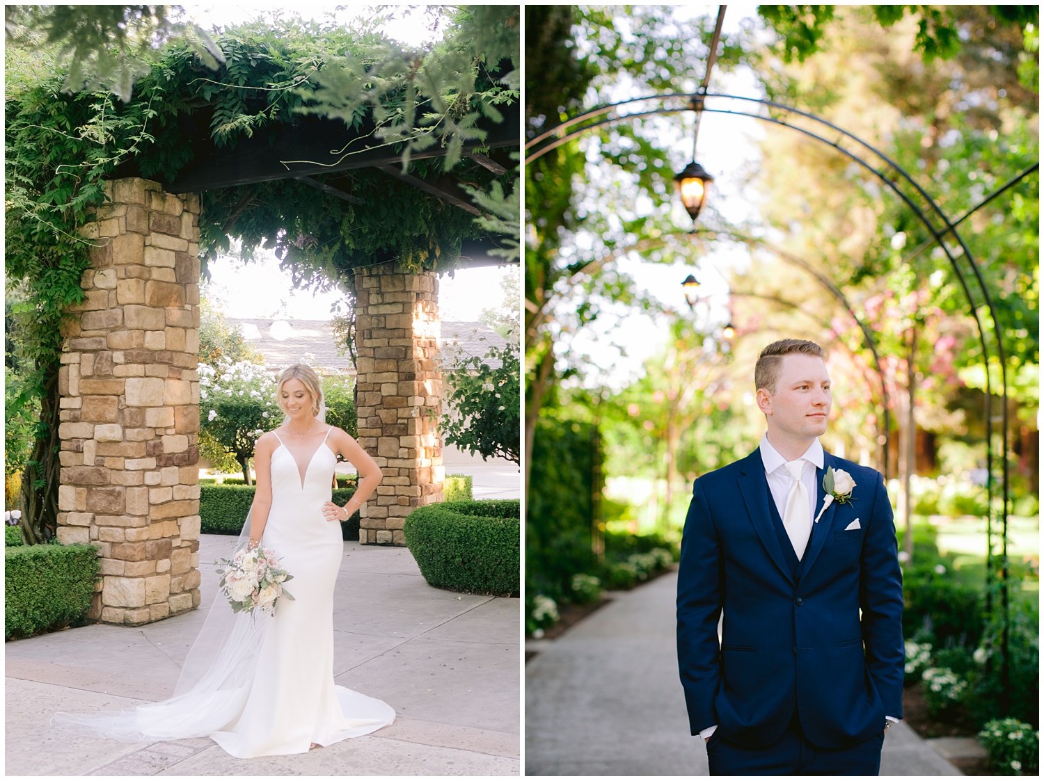 They both are stunning and the reception space at either side of the venue overlooks the beautiful lake. The difference lies in the ceremony location. The lakeside has the ceremony overlooking the beautiful lake and is more of an open feel as you’re getting married under an open wooden gazebo. Whereas the ceremony location at the English Garden is more secluded as it is surrounded by beautiful florals and stone columns covered in greenery.